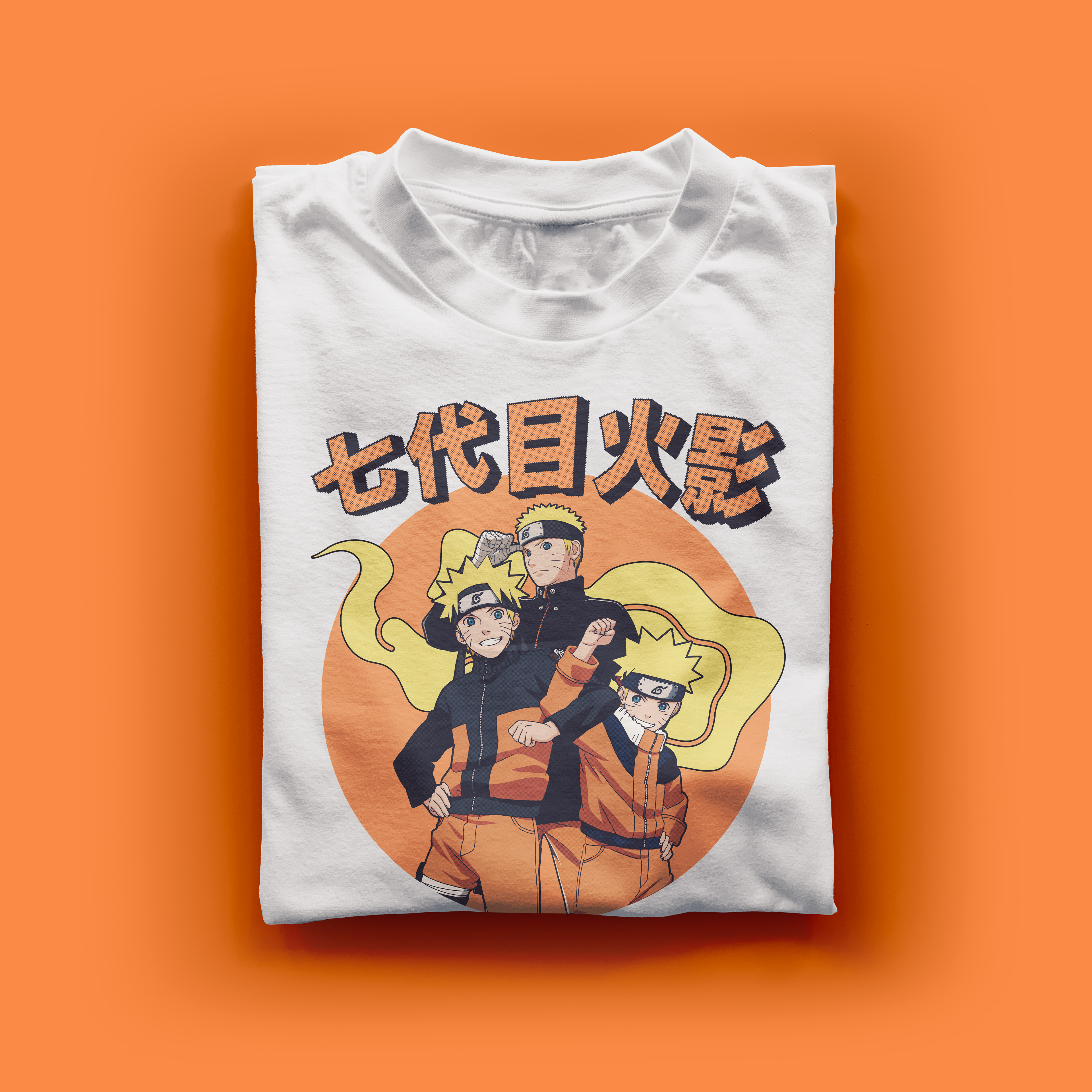 This illustration was created using the three different ages of the character of Naruto from the popular anime. I used the original colors and added a very slight halftone effect. The color palette is in a retro style to give it a manga-like effect, similar to that used in color manga posters and arts.