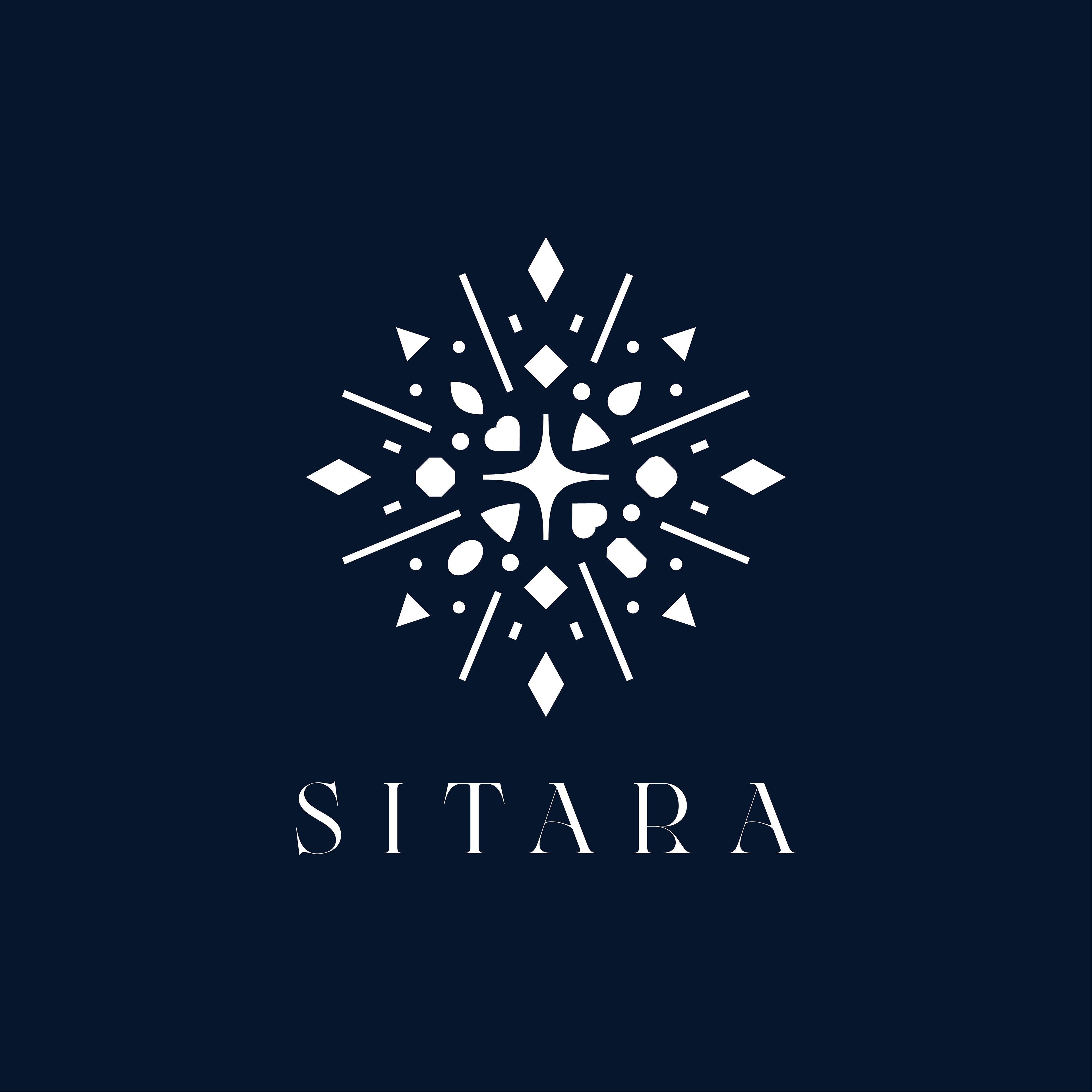 Logomark consists main element Star ( Sitara ) in the middle and "Sitare" plural of "Sitara" is more commonly used for sparkles and small mirrors put on indian  ethnic clothing and apparel that come in different shapes and sizes, the whole logomark is in a shape of a mandala a Indian form of geometric art which is also similar to islamic geometric designs.