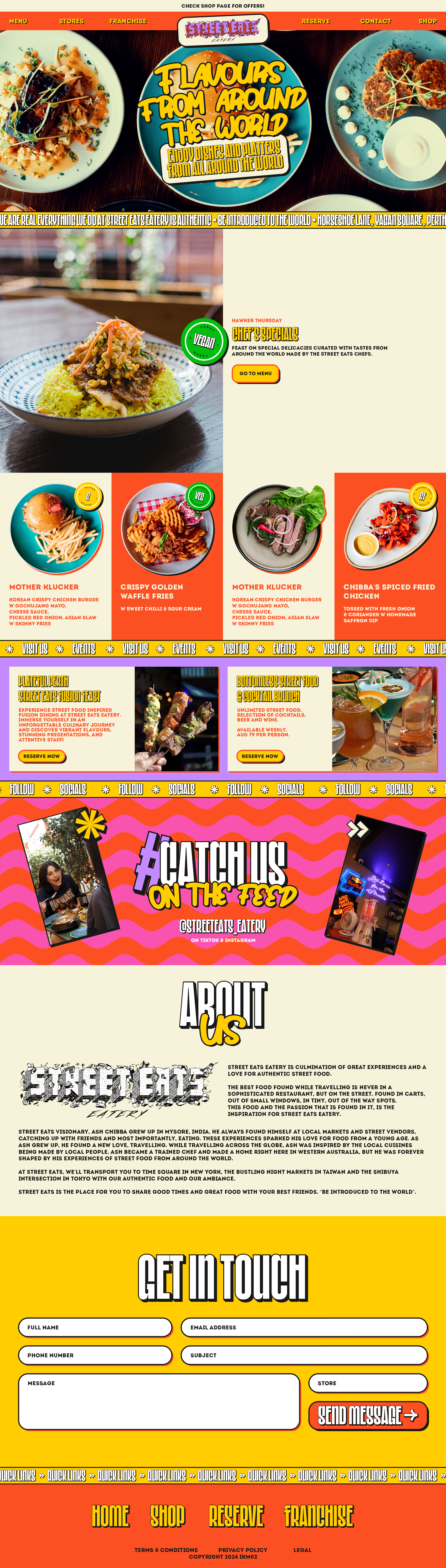 A design for the Landing Page for the website of a Street Food Restaurant in Perth, Australia named "The Street Eats Eatery".